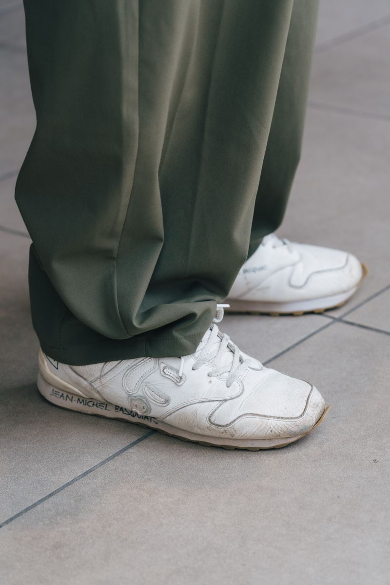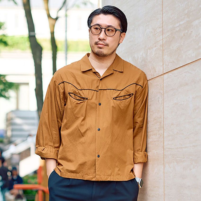 ▶︎田村さんのスナップをすべて見る田村 郷さん(43歳)まず注目したいのが田村さんの着こなし。なんと開襟シャツばかりか、中に仕込んだ白T、タックが入ったスラックスもすべてジーユーという徹底ぶり。アイテムをほぼフレンドリーブランドで揃えながらも、色やシルエットのシックさを意識することで品良い大人の着こなしに。