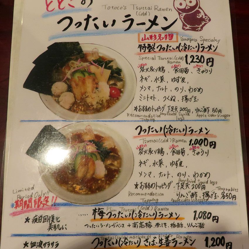 夏季限定メニューとしてではなく、一年を通して「つったい(冷たい)ラーメン」(1000円)を食べられるのが、こちら「ととこ」さん。2012年、千代田区神保町にオープンした店を元気に切り盛りするのは、山形県出身の女性店主。