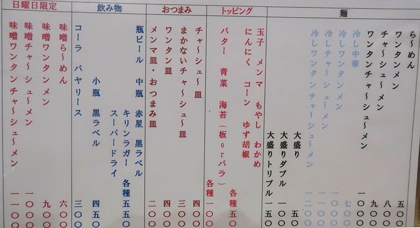 もうひとつ、太っ腹なのはコスパの良さ。「冷し中華」が今どき700円なのもびっくりですが、なんと「らーめん」は500円。しかも、トッピングは50円と100円の品が多数。例えば「冷し中華」に玉子、もやし、ワカメ、コーン、青菜を追加しても1000円ピッタリ。うれしすぎですわ。