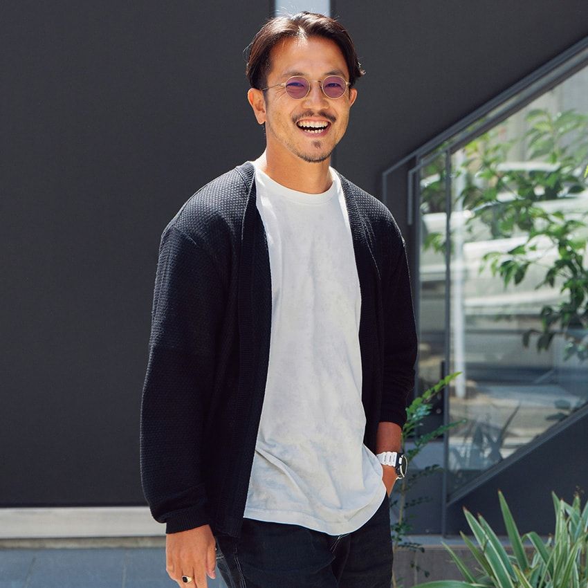 岩谷一樹さん / 43歳かつてオーシャンズでは、「デニムには清潔感が生まれるカーディガンを」と提案していた。ショーツでも同様だということを岩谷さんが実証。黒を選べば、よりその効果を感じられると思う。