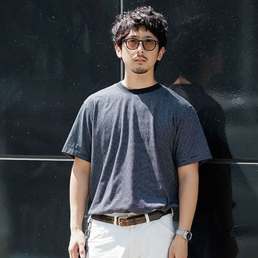 【写真9点】「無印良品のTシャツを洒落て着こなす3人の大人たち」の詳細を写真でチェック ① シャリ感が涼しげな無印Tシャツコーデ