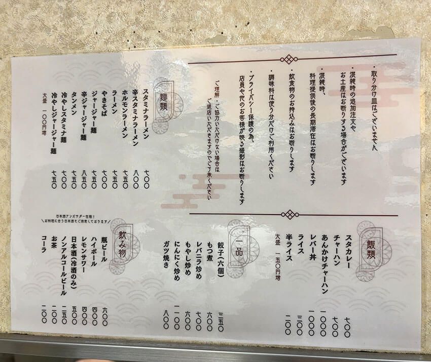 だいたい「スタミナラーメン」「タンメン」「餃子」「焼きそば」「スタカレー」ばかり頂いていましたから。ではなぜ紹介するのか、と言いますとその後伺った「漫々亭 指扇店」や「娘娘 大成店(閉店)」で冷やしメニューを頂いたから。
