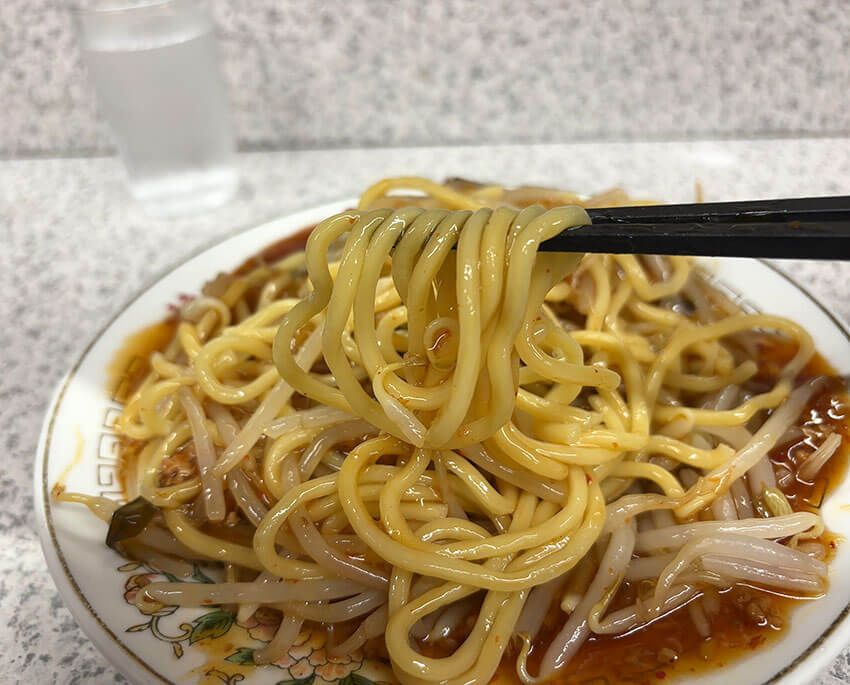 スタミナ餡はたっぷりのひき肉とニラにとろみがついたもの。豆板醤やニンニクなどによって味付けが施され、舌上に余韻が響く仕上がりとなっています。むっちり感のある太麺との絡みも抜群で病みつきに。