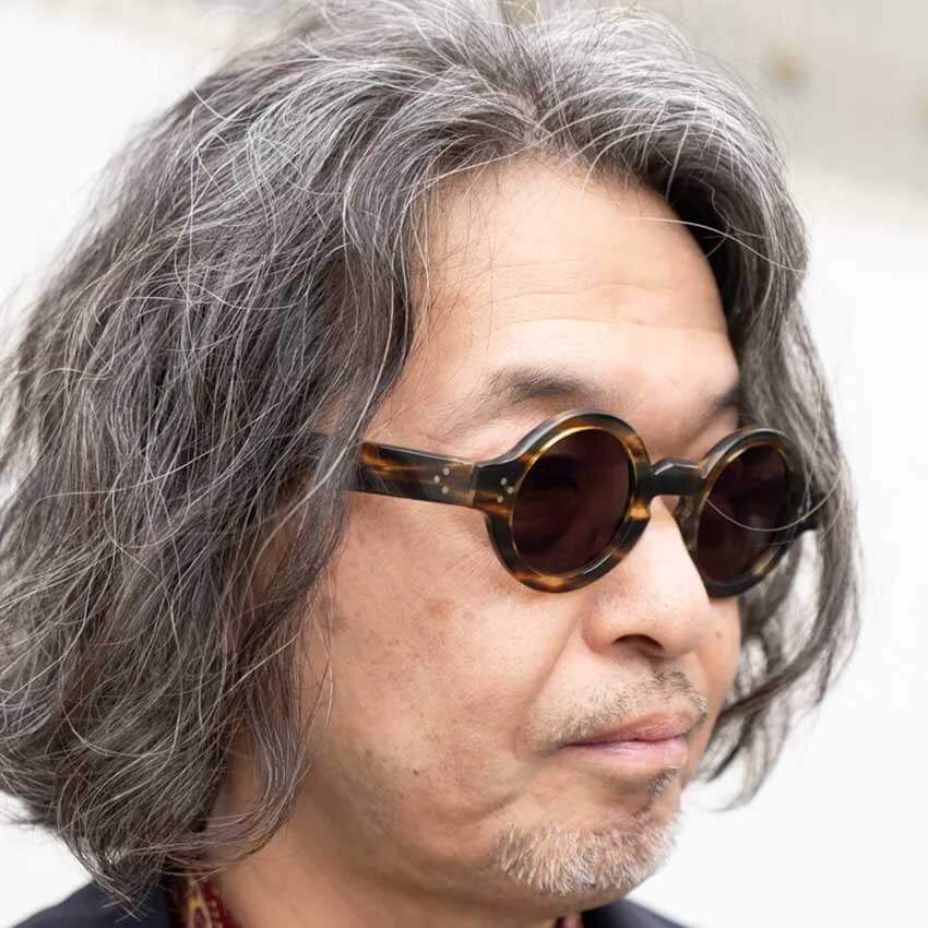 シャツ、パンツ=ともにウィーウィル シューズ=ノーブランド 眼鏡=ジュリアスタートオプティカル 腕時計=ロレックス スカーフ=トゥータル リング=カルティエ