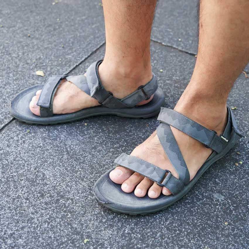 ▶ヨネザワさんのスナップをすべて見るヨネザワさん(38歳)グレーのクロスストラップが、“抜け感”を演出しつつも足をしっかりホールド。「アクアグリッパー」のアウトソールは、濡れた岩肌に対しても強力なグリップを発揮する。