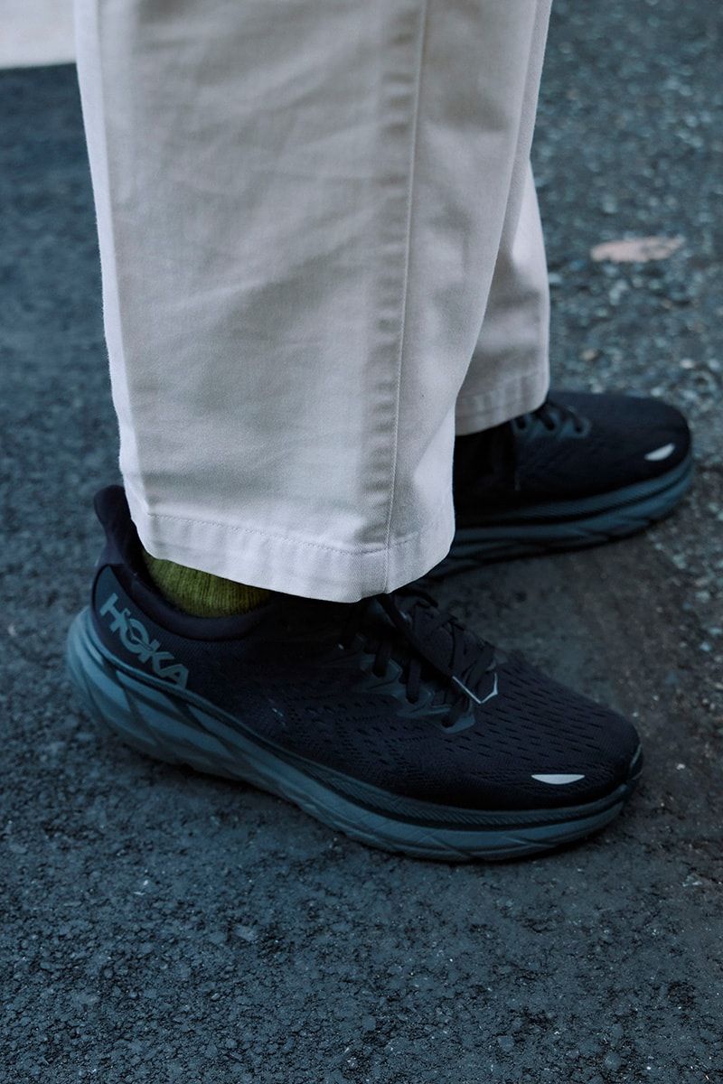 Gジャン=クーティープロダクションズ Tシャツ=古着 パンツ=不明 スニーカー=ホカ 眼鏡=ゾフ