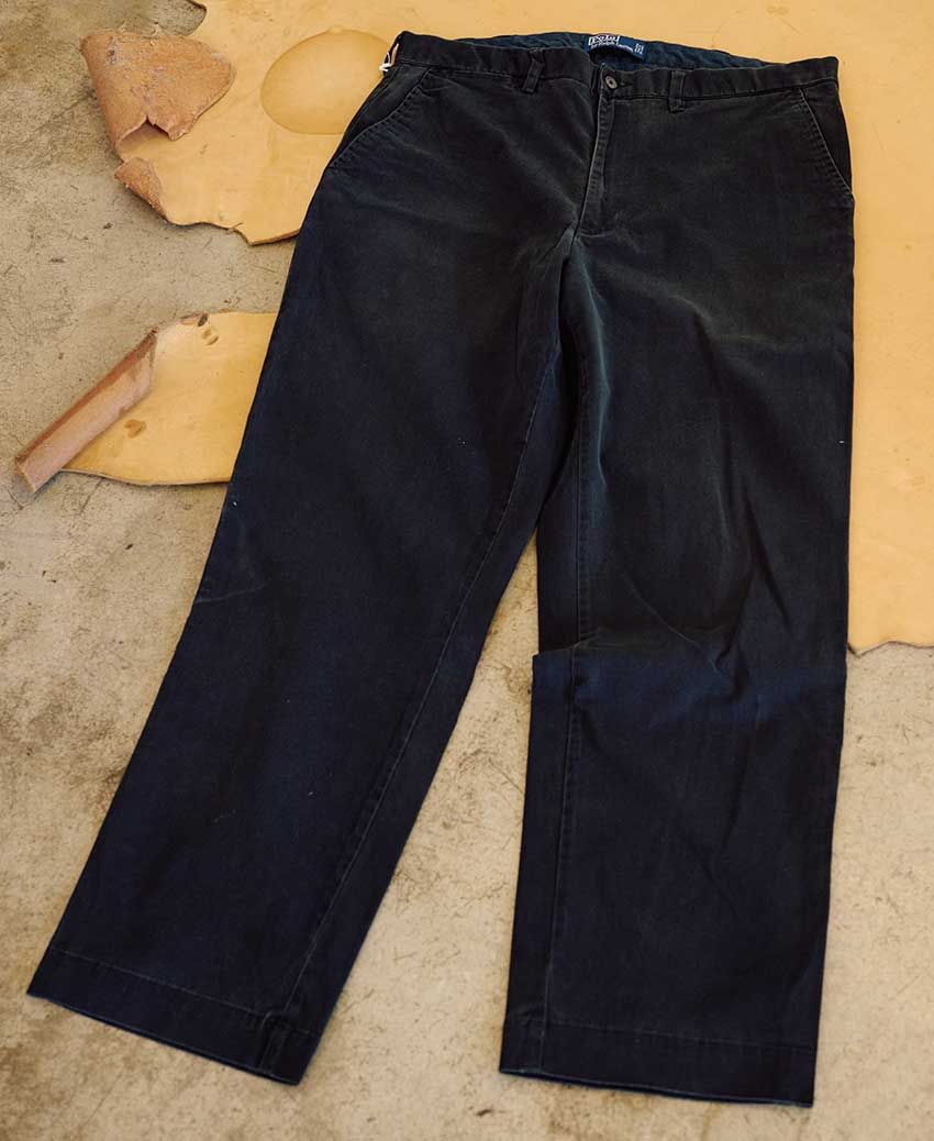 宮島 “ラルフ”の黒チノ。フェード感がよくて選びました。チノはベージュの印象が強いけど、黒もいいですね。はき込むほどに味が出そう。