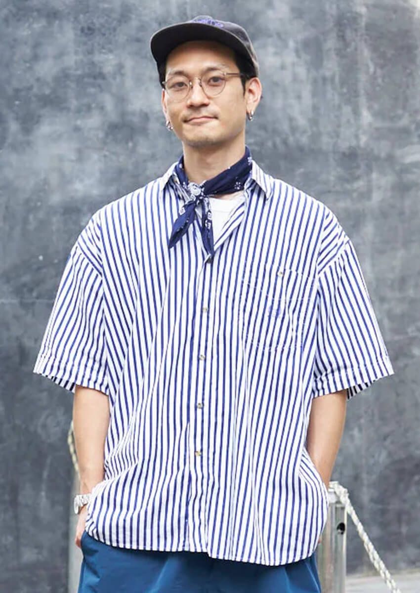 【写真9点】「今季も大人気“ストライプシャツ”。街の洒落者たちの愛用品」の詳細を写真でチェック① ギャップが楽しいルーズな全留め