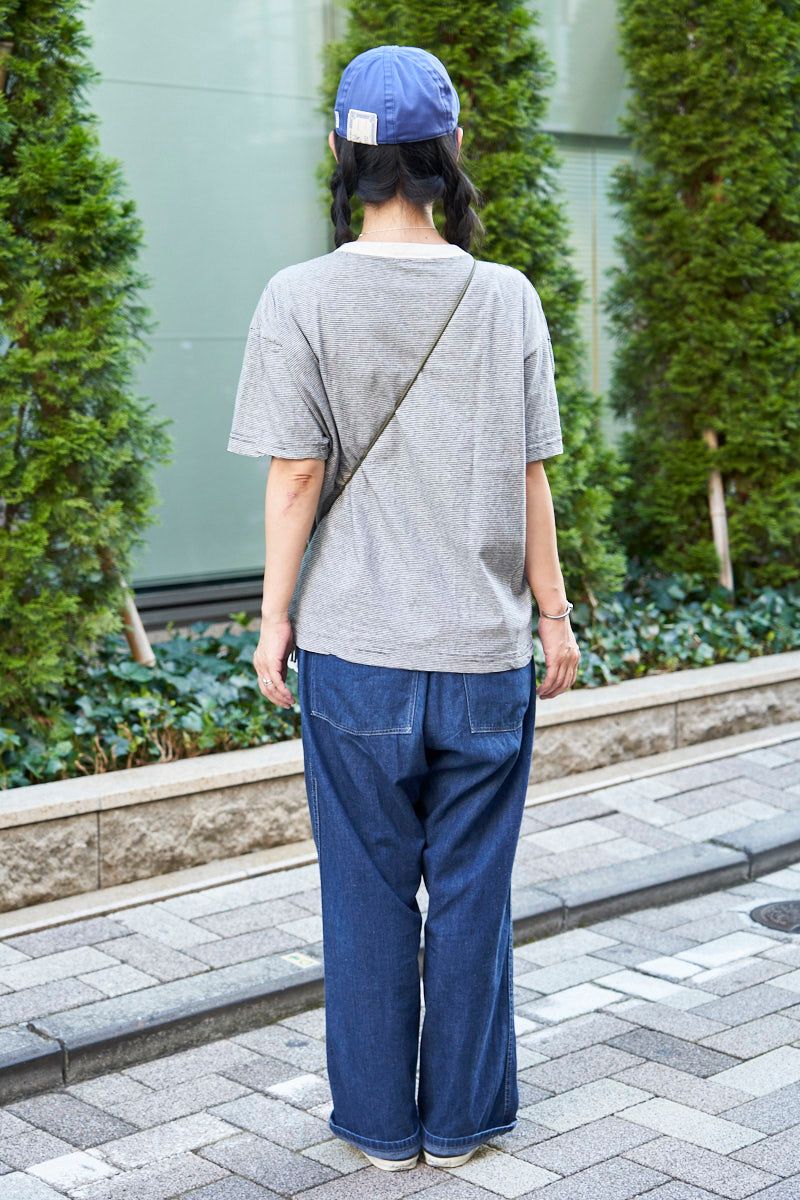 タカコさんはゆったりとした古着のワイドデニムに、ルーズなTシャツを合わせたラフなスタイルを構築。サイズバランスを合わせ、統一感を演出した。シンプルながらもシルエットで魅せる。大人ならではの抜け感ある着こなしだ。