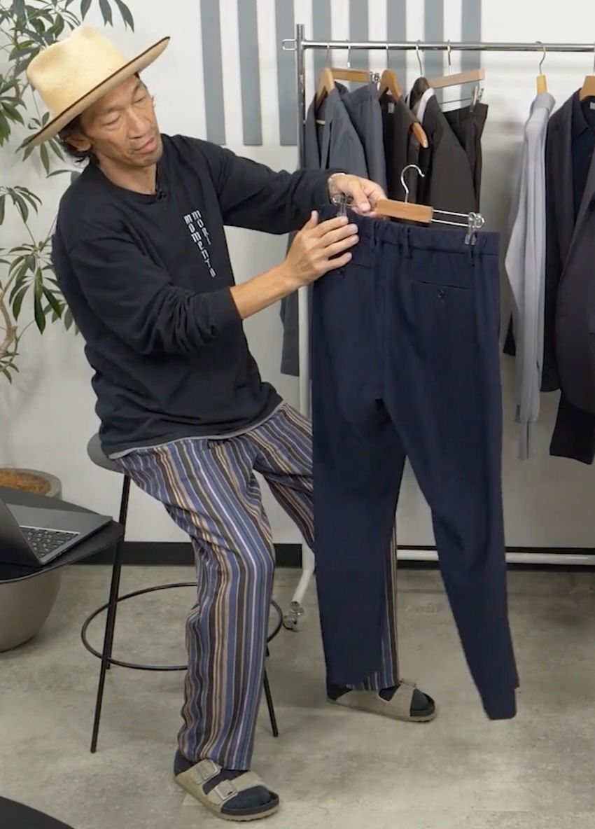 キクチ ちょうどいまのタイミングに着るのに最適だと思う。形もよくて、パンツのウエストは後ろがゴムだし、ドローコードで調整もできる。