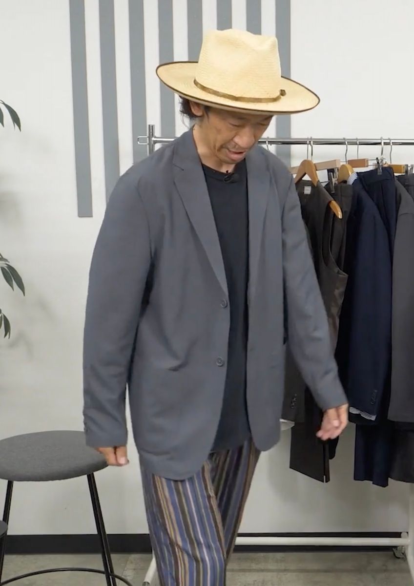 無印良品にお邪魔させてもらった回で、セットアップを見て、「無印良品も結構スーツがあるんだな」って思ったんだよね。しかも、この軽さに驚く。