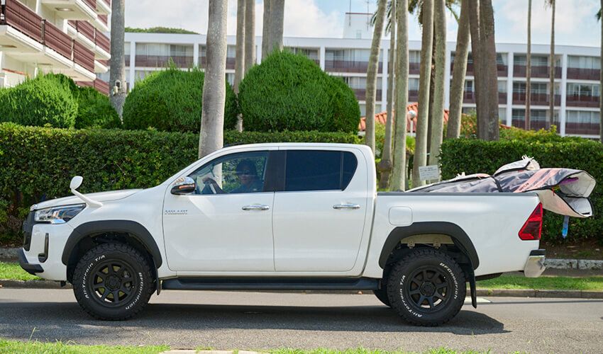 白方さんがハイラックスに乗り始めたのは約2年前。大きい割に小回りが効くことが、最初のうれしい発見だったという。