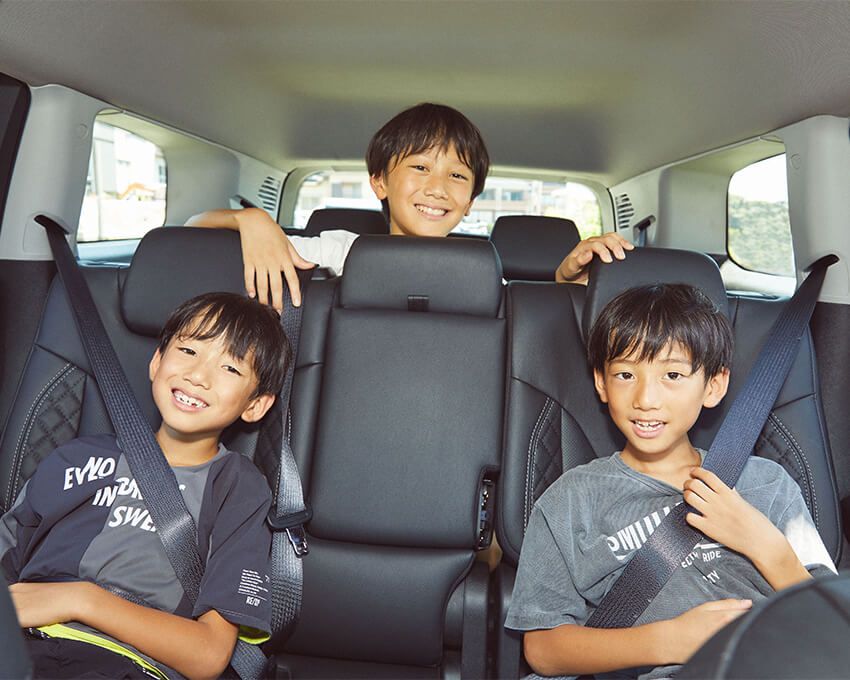 2列シートの車両でも一家5人で乗れなくはないが、余裕のある居住性が会話を弾ませてくれるし、家族の笑顔に直結する。改めて言うまでもなく、いざというときには最大7人乗りとして、子どもの友達や祖父母との3世代旅行にもフル回転で活躍するのだ。