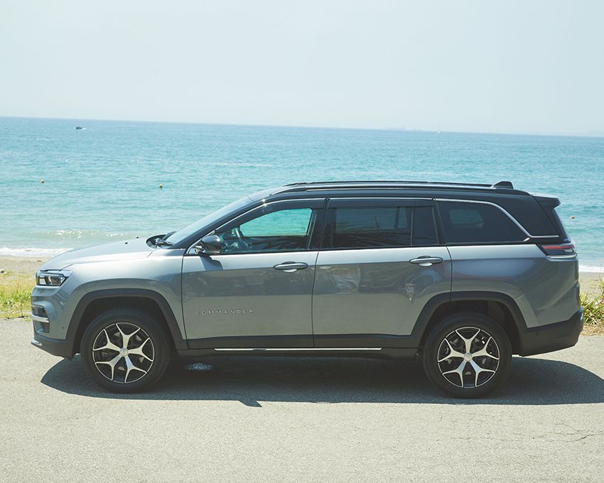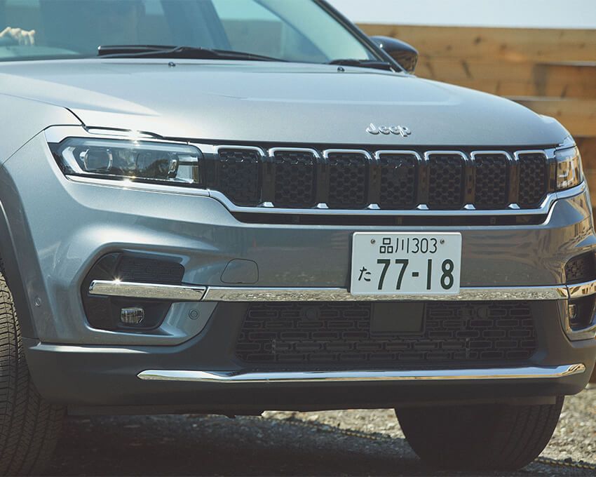フロントマスクはJEEPのアイデンティティである7スロットグリルが目を惹く。しかも現代的に洗練されていて、今回訪れたビーチクラブのようなハレのロケーションにも、かたや都会でのドライブにもしっくりハマる外観だ。