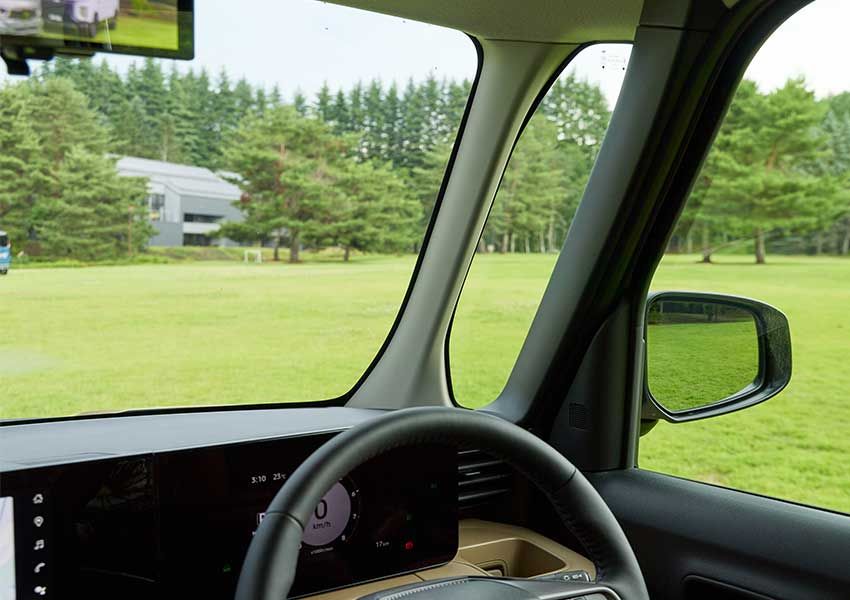 実際に乗り込んでみると、視界の抜けの良さに驚かされます。大きなフロントウィンドウからの眺めと相まって、運転中も安心感がグッと高まります。