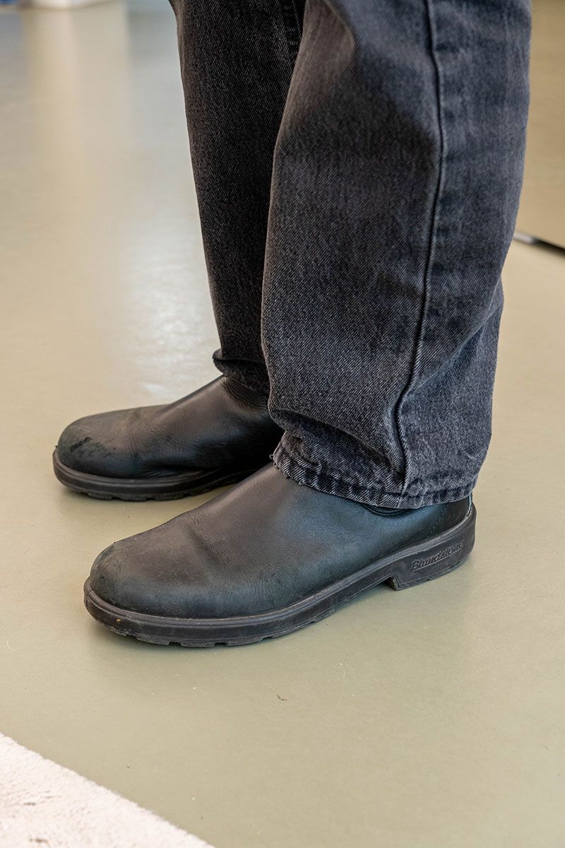 ▶︎キムさんのスナップをすべて見るキム・ジェホンさん(32歳)チェックシャツ&デニムというベーシックな組み合わせを、黒のチカラでシュッと見せる。インナーも黒Tを選んで、さらっとタックイン。バッグも靴もオールブラックだ。