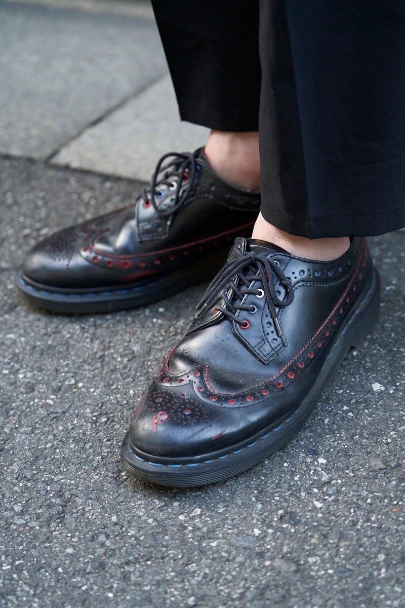 ポロシャツ=シーイン パンツ=不明 シューズ=ドクターマーチン 腕時計=アップル ネクタイ=ユニクロ