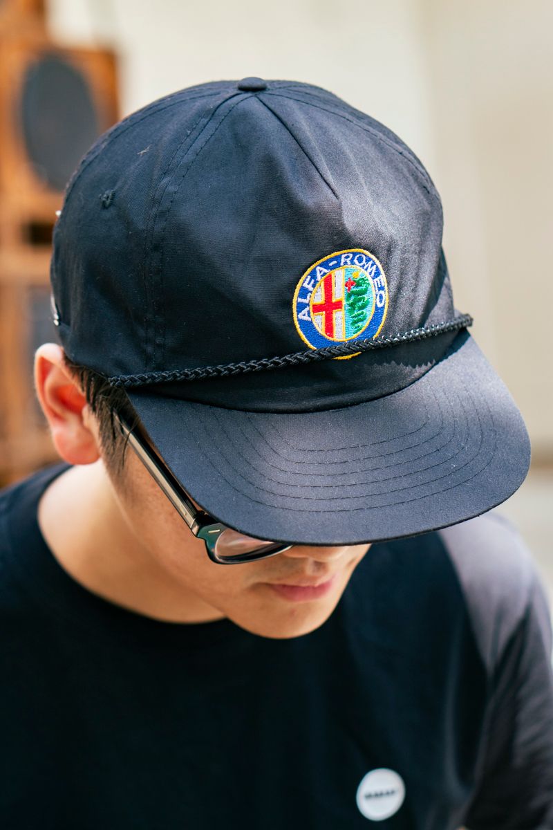 ▶︎奈良さんのスナップをすべて見る奈良悠平さん(22歳)オフィシャルかブートかは正直なところ定かではないが、フロントにイタリアの自動車メーカー「アルファ ロメオ」のエンブレムがキラリ。編みコードにも、どこか気品が薫る。