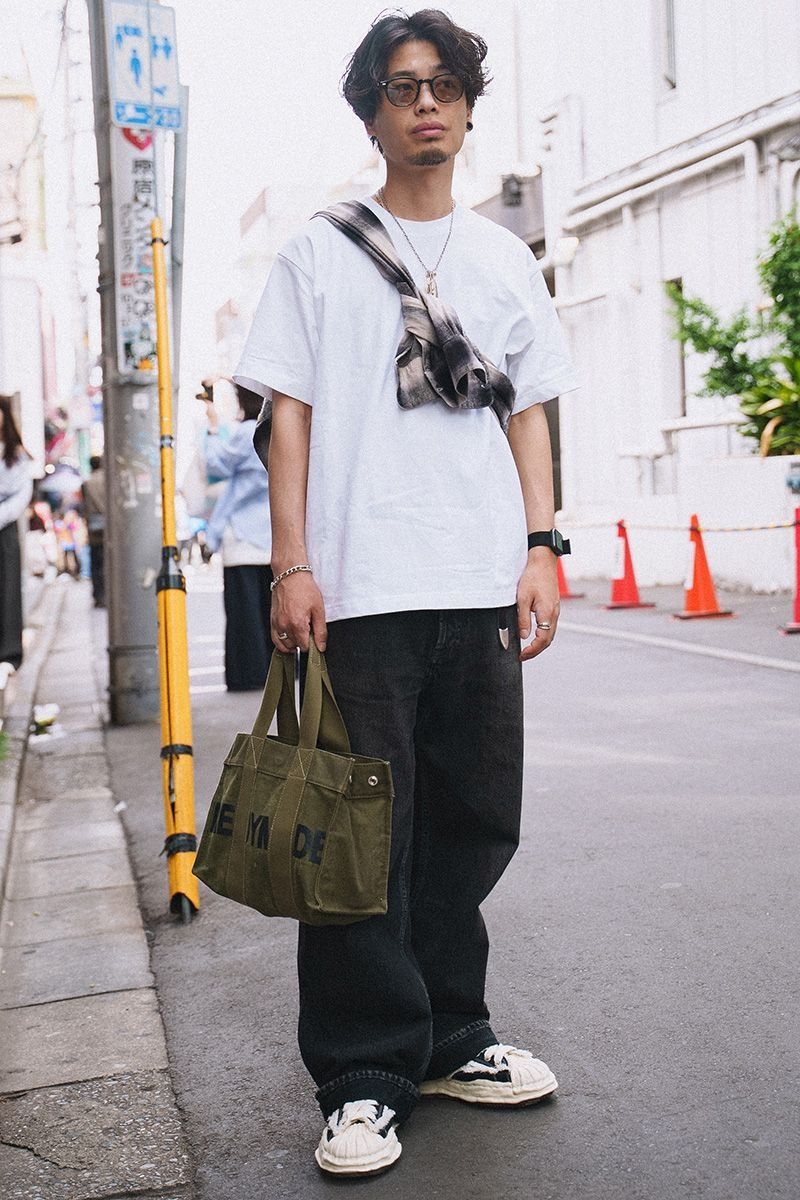 今回は街で見かけた洒落者のスナップから、ヘインズのTシャツを軸にしたリアルな着こなしを紹介しよう。