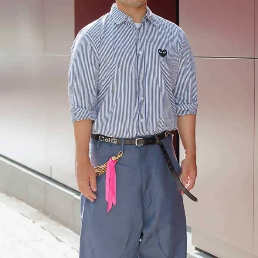 シャツ=プレイコムデギャルソン パンツ=コムデギャルソンオムプリュス シューズ=アダムキメル 帽子=ナイキ 眼鏡=アイヴァン ベルト=ウルフズヘッド ウォレットチェーン=ジュディブレイム