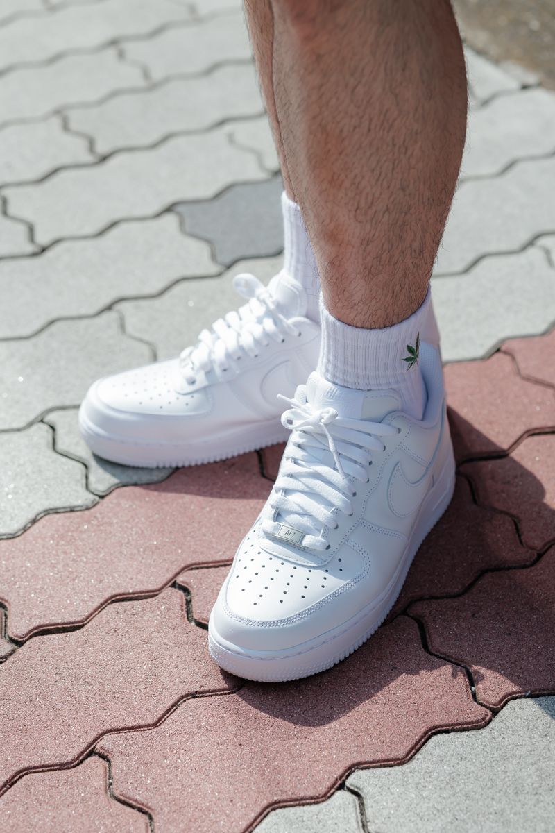 その存在感をフルに活かすべく、そのほかのアイテムはオールホワイトで極力シンプルに。と思いきや、ソックスにはやんちゃなグリーンのアイコンも。