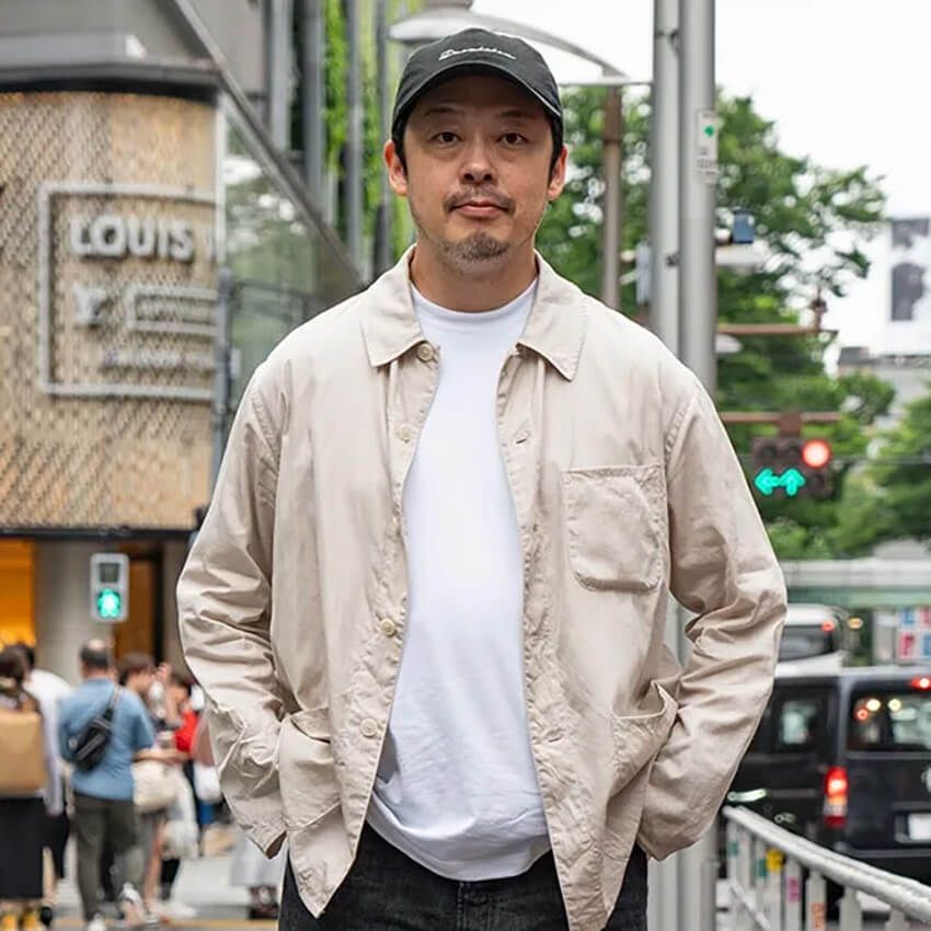▶︎原田さんのスナップをすべて見る原田隆太さん(44歳)白Tにブラックデニムというごくごくシンプルな装いに、ほんのりと優しい雰囲気を添えてくれているのが生成りのワークシャツだ。決して派手でないが、マイルドで大人な着こなしの決定打となっていることは間違いない。