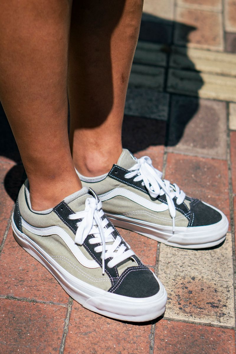 ヴァンズの軽やかさ、シェーヌ・ダンクルの重厚感など、均整の取れた小物チョイスも秀逸。襟元から除く白いインナーが生む、適度な“ヌケ”もお見逃しなく。