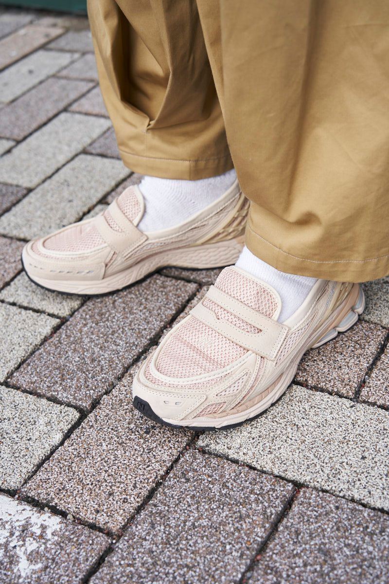 何気なく着ただけな感じでもしっくり馴染むのは上下を同ブランドで揃えているから。ローファータイプのニューバランスで今っぽさも添えた。センスいい!