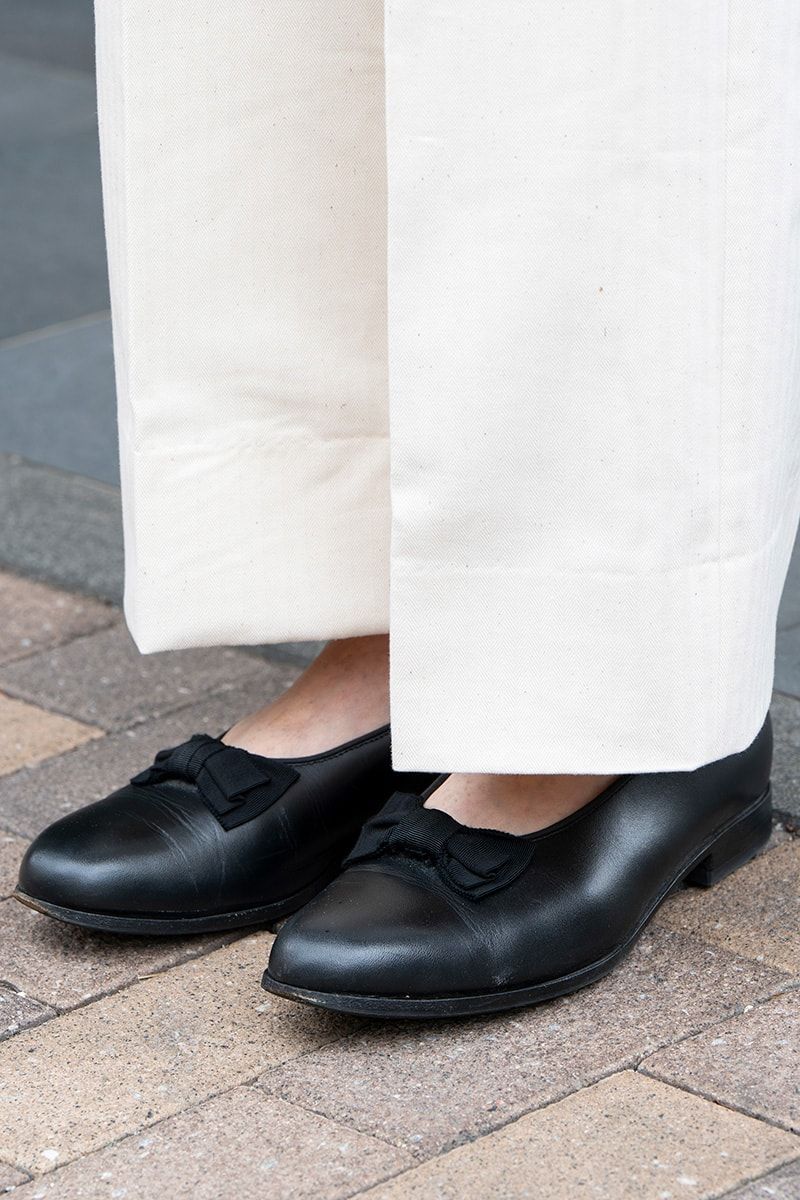 ▶︎そらさんのスナップをすべて見るそらさん(22歳)おそらくリネン素材と思われる軽やかな白シャツ。ブランドは1839年英国生まれの老舗「コーディングス」をセレクトした。インナーに白Tを挟み、第一ボタンを開け、袖もラフに数回捲り。シャツの風合いと着こなしがマッチしている。
