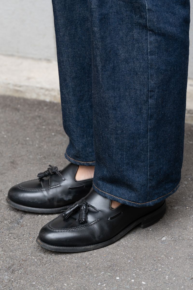 シャツ、デニム=ともにアトリエフロート シューズ=バーウィック 眼鏡=ヴィンテージ ブレスレット=コーナーズ