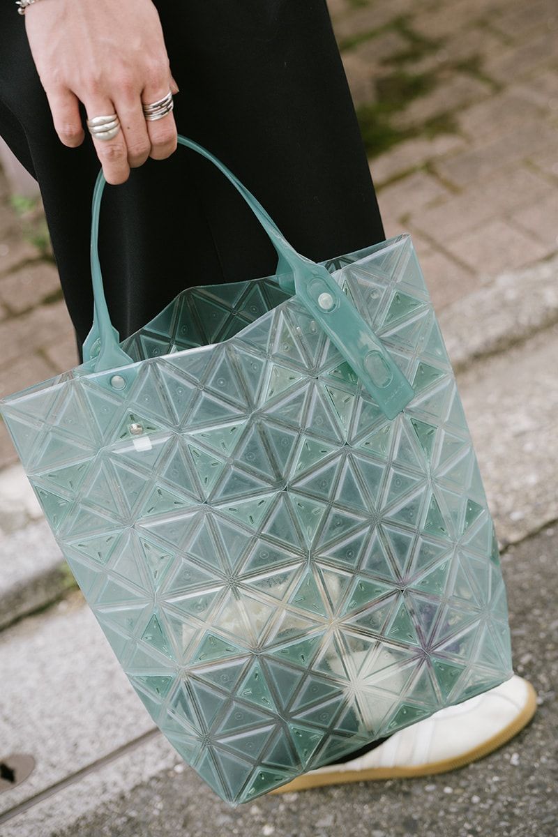 ここに合わせたのはニューエラのキャップやアディダスのローテクシューズ、バオバオイッセイミヤケなどの小物類。黒でシックさを演出しつつも、小物でラフに見せる。バランスの取り方が上手い。