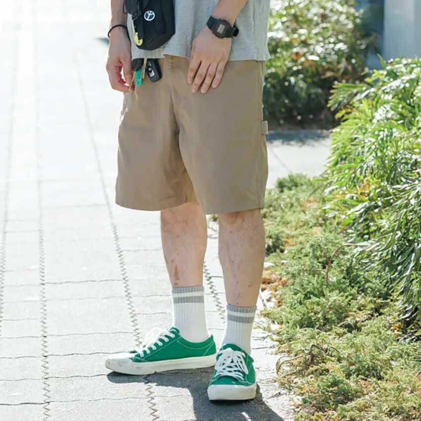 ▶伊藤さんのスナップをすべて見る伊藤光洋さん(45歳)「ユニクロ」のグラフィックTに、「GU」のカーキショーツを合わせ、鮮やかなグリーンのコンバースでシメ。シンプルでありながら、色の利かせ方にセンスが光る。サコッシュやサングラスの小物使いもこなれた空気感が漂うコーディネイトだ。