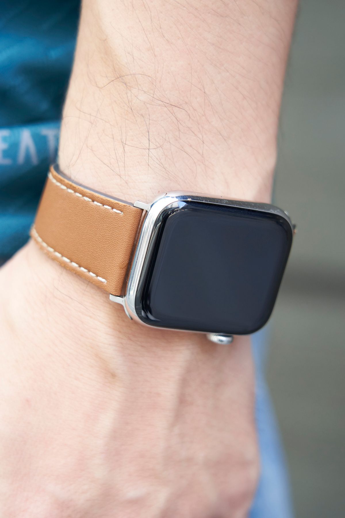 そのキレイな色合いを活かすべく、アクセントカラーはベージュ系に統一。アップルウォッチのベルトで、足元のヴァンズで、品良く軽やかに彩りを加えた。