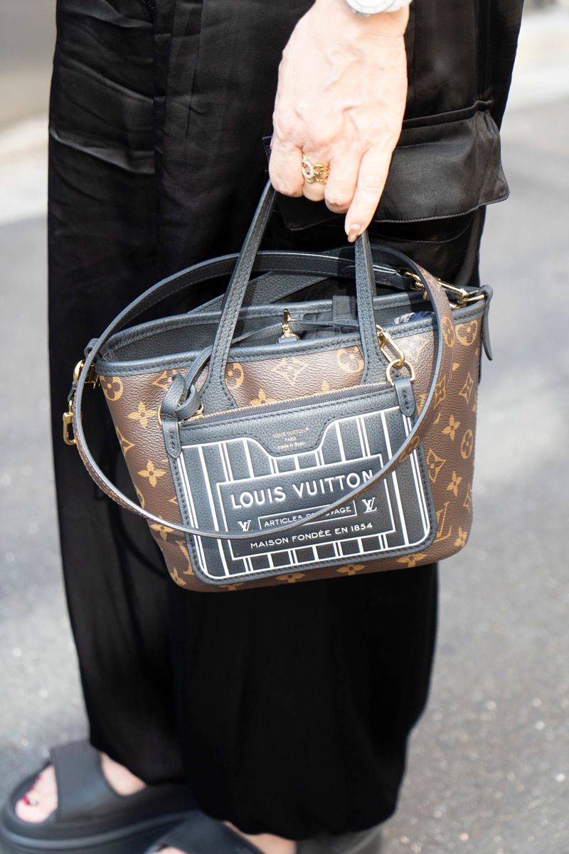 で、手元ではルイ・ヴィトンの傑作「ネヴァーフル」のリバーシブル仕様が主張。エターナルなモノグラムが、軽装に問答無用の説得力を与える。