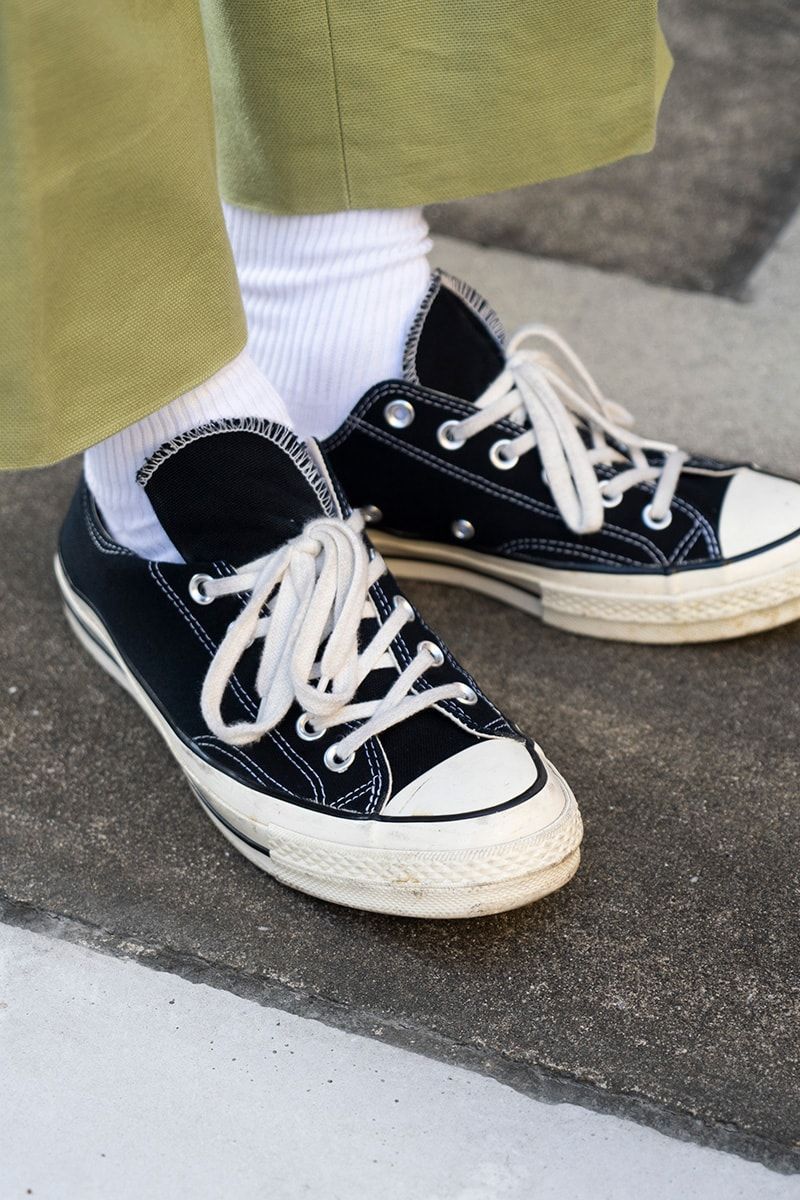 スニーカーもオールスターという定番中の定番をセレクトし、汎用性の高いエターナルスタイルを実践。コスパ高めのブランドチョイスも、マネしたいと思わせるに十分。