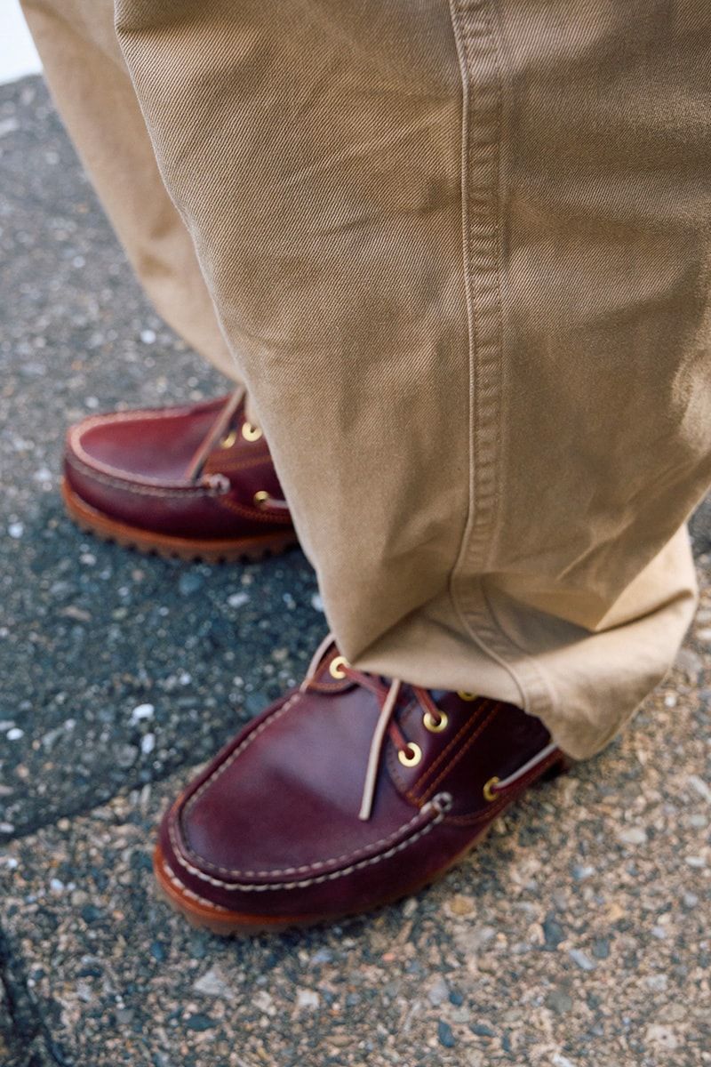 ジャケット=スタジオニコルソン パンツ=オーラリー 靴=ティンバーランド バッグ=シティライツブックストア