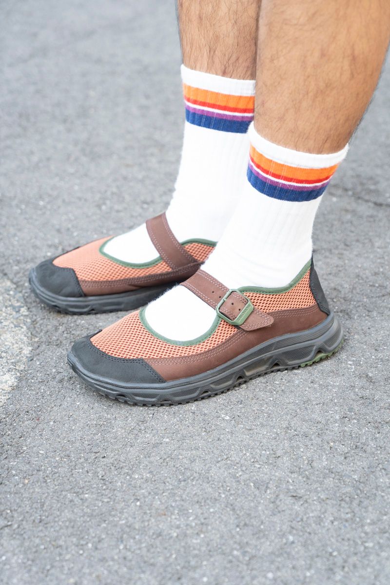 軽やかなパンツの印象をショートソックスと同調させつつ、足元の色味はトップスのカラーリングと巧みにリンク。気分良く、まとまり良く、賑やかな秋の装いが完成。