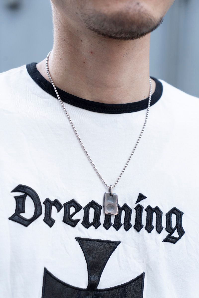 Tシャツ=オリミ パンツ=ジーユー シューズ=フットザコーチャー 眼鏡=イヴサンローラン ピアス、ネックレス=ともにノーブランド リング=トムウッド リング2=シハラ