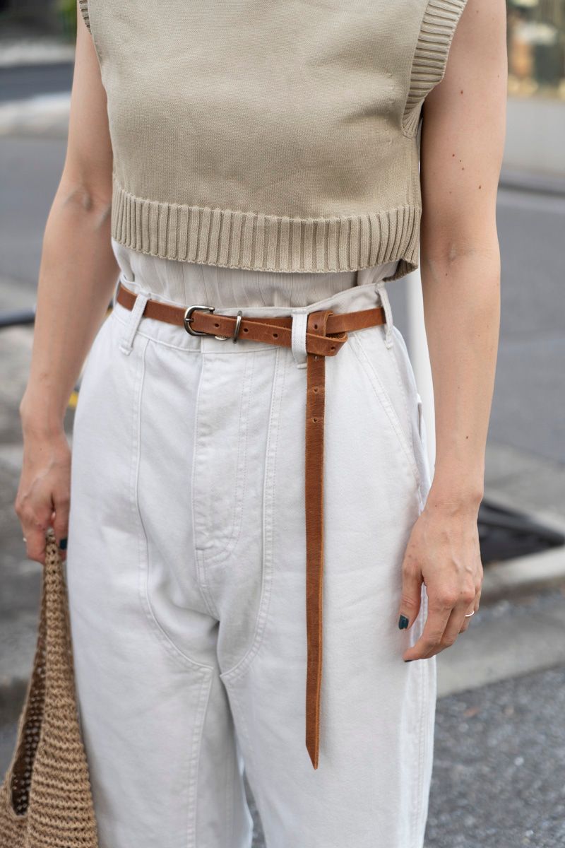 ニット、ベルト、バッグ、ブーツと、それぞれの舞台でニュアンスを変えた“茶系”がキュートに主張。繊細なバランスは、ナチュラルなヘアカラーともリンクする。