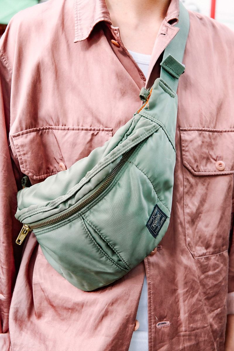 ご存知「タンカー」を纏う微光沢も、ウェアに引っ張られる形でドレッシーなグロッシーに。これ、ウエストバッグではなくそもそもボディバッグ……。なんてツッコミは野暮よ!