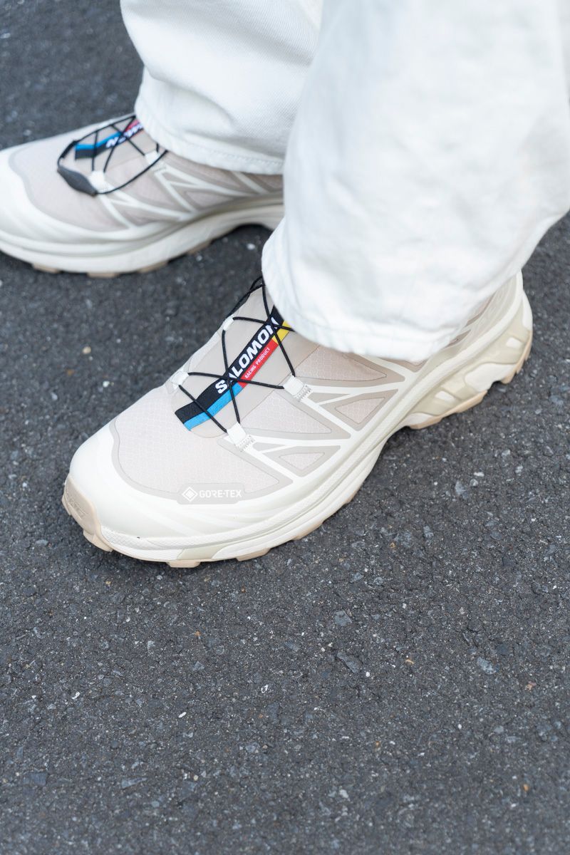 街の洒落者たちは、機能性とデザイン性の境界を軽やかに越えていた。サロモンを履きこなすコツは、“テック感を上手く活かす”こと。自然体のスタイルにちょっとだけギア感を混ぜる、そのバランスこそセンスフルに映るのだ。