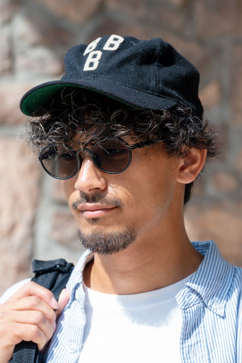 ▶︎山代さんのスナップをすべて見る山代竜也さん(32歳)山城さんがチョイスしたのはブラックのラウンドタイプ。ウールキャップ&パーマのかかったヘアスタイル、綺麗に整えられたヒゲも含め、顔周りを印象的かつ個性的に彩った。