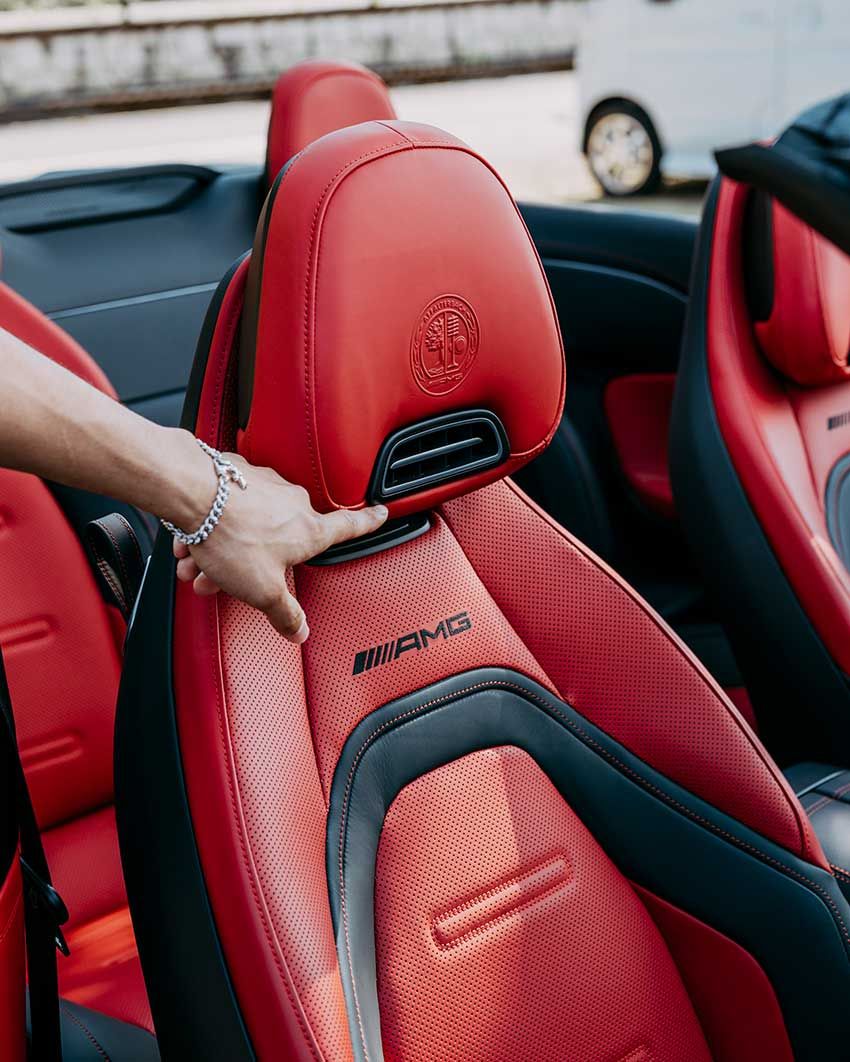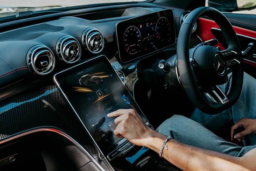 「AMGのエンブレムは特別感があってヤラレちゃいますね。ステアリングやメーター類のデザインも好みで、洗練されたインテリアに毎回テンションが上がっちゃう。大きな液晶ディスプレイは視認性も高く、チラっと見るだけで情報がパッと入ってくるので、運転中も安心できます。