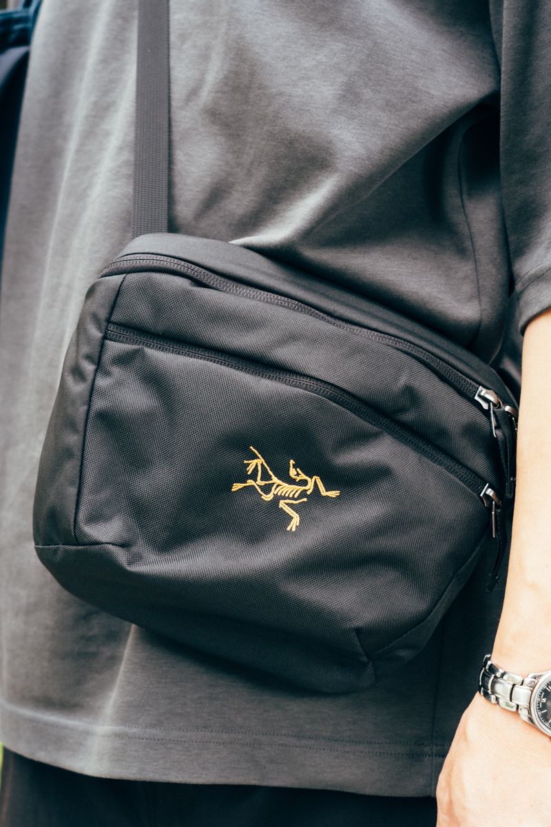 【写真10点】「アークテリクスのミニバッグ『マンティス』の愛用者たちをパパラッチ」の詳細を写真でチェック① 黒×ベージュに馴染む、硬派なデザイン