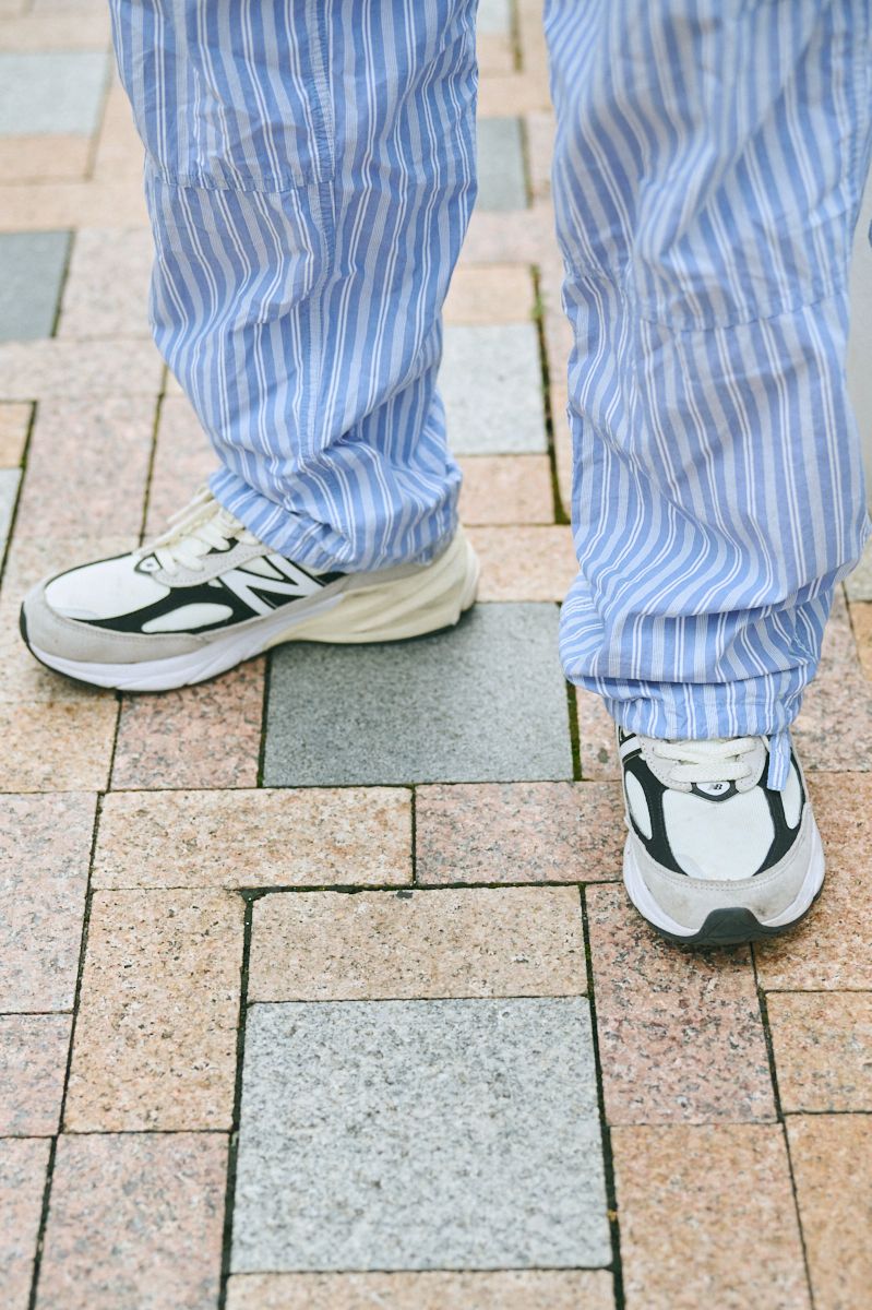 そしてよく見ると、随所にブルー系の色が散りばめられていることにも気づく。グリフィンのパンツのグラフィックも青。こうしたさりげない計算が、全体のこなれた印象につながっているのだろう。巧い。