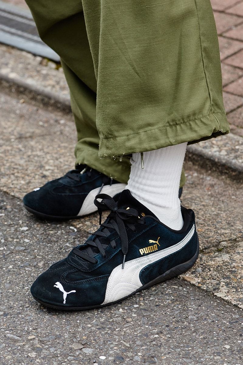 で、足元には最近セレブやデザイナーからも高支持率のプーマ「スピードキャット」をセレクト。スエードの素材感が実に上品だ。トータルで文句のつけようがない。