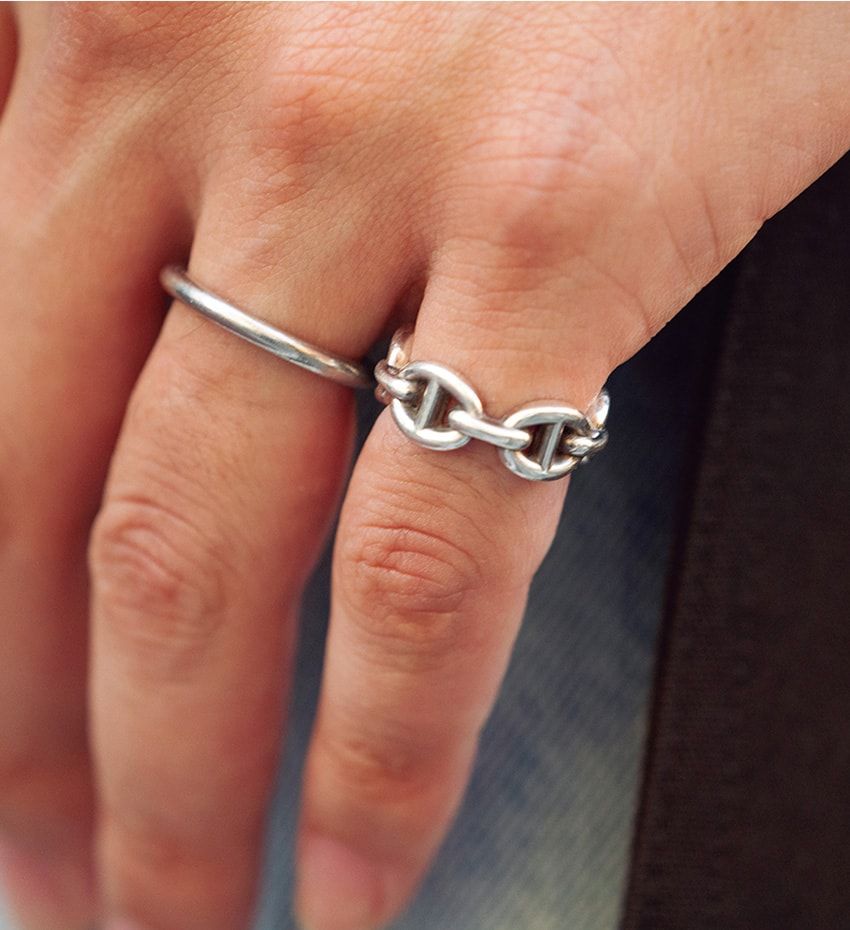 チラ見えする白T、手元で輝く控えめなシルバーアクセなど、適材適所の脇役たちも装いの完成度に直結している。