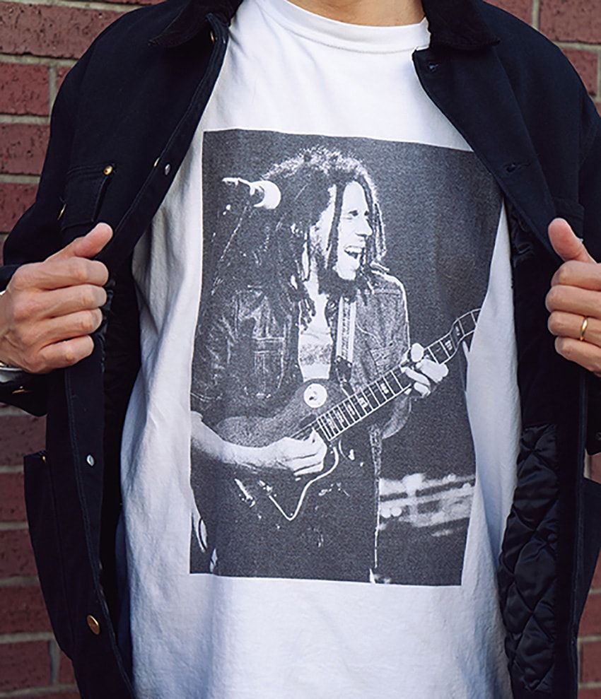 加藤廣人さん / 42歳ボブ・マーリーの勇姿がフロントを飾る、音が聴こえるデニムスタイル。いわゆるバンドTとのコンビは90年代からの古典ながら、あえて細身のデニムを合わせるという選択が白眉。