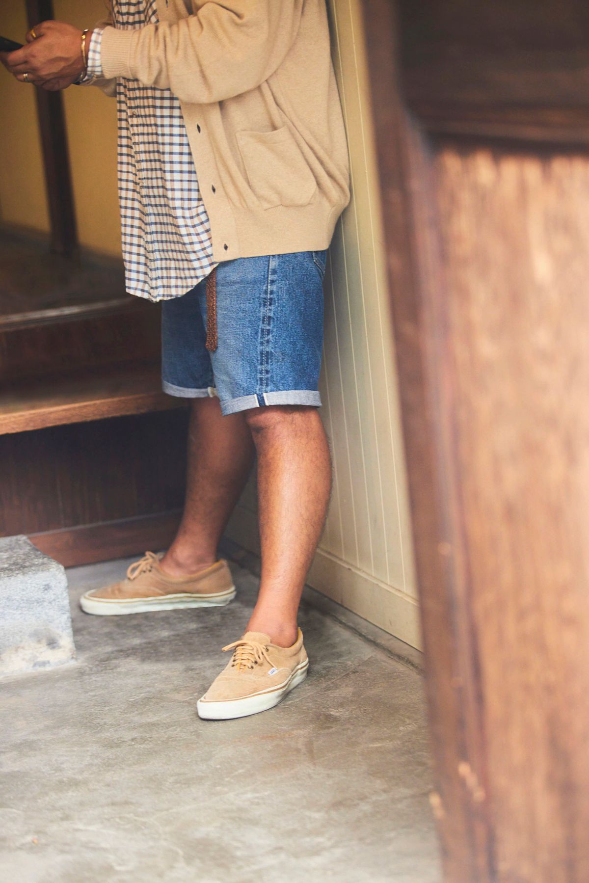 「あと、ショーツだとクラフト感というか温もりが出るじゃないですか。僕の中では、フルレングスの501だとどうもバランスが取りにくいと感じていたんですが、ショーツだとすんなりハマるという感覚があるんです」。