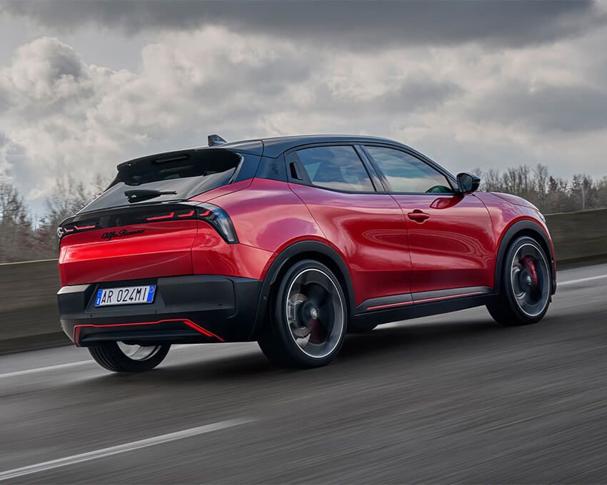 フロントマスクには他モデルと同じく盾型のグリルを踏襲。リアのスタイリングは、スポーティな逆台形型のリア ウインドウと、テール部分を垂直に切り落としたような、アルファ ロメオ十八番の空力の高い“コーダ・トロンカ”を採用している。